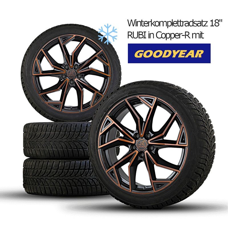 JE DESIGN Winterkomplettrad 18" Rubi Copper mit Goodyear. Für Cupra Born K1 (Nicht für 77/82 KWH/VZ 240kW)